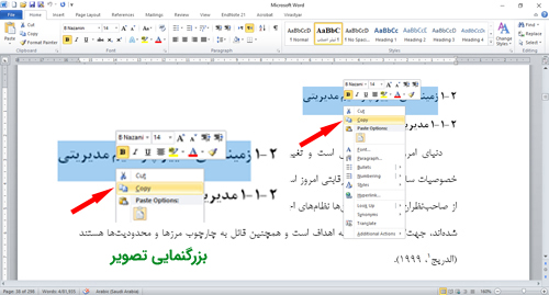 در ابتدا متن عنوان خود را انتخاب، راست کلیک کرده و گزینه کپی (Copy) را انتخاب کنید.
