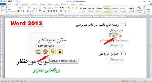 روش دوم را مرحله به مرحله به صورت تصویری توضیح میدهیم (تصاویر مربوط به Word 2013 و در سیستم عامل Windows 10 انجام شده).
