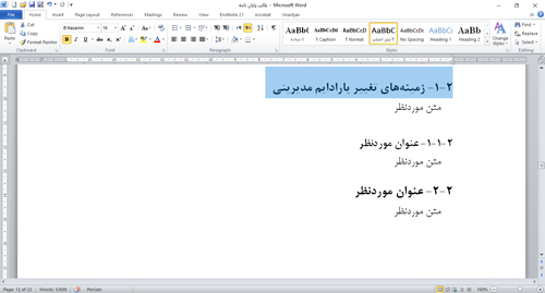 طراحی استایل آمادهی فونتهای بخشهای مختلف پایاننامه